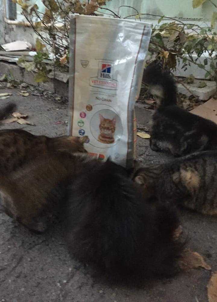 Коты получили помощь в виде сухого корма Hill’s от наших друзей Иры Азизян и Юлии Фирка.