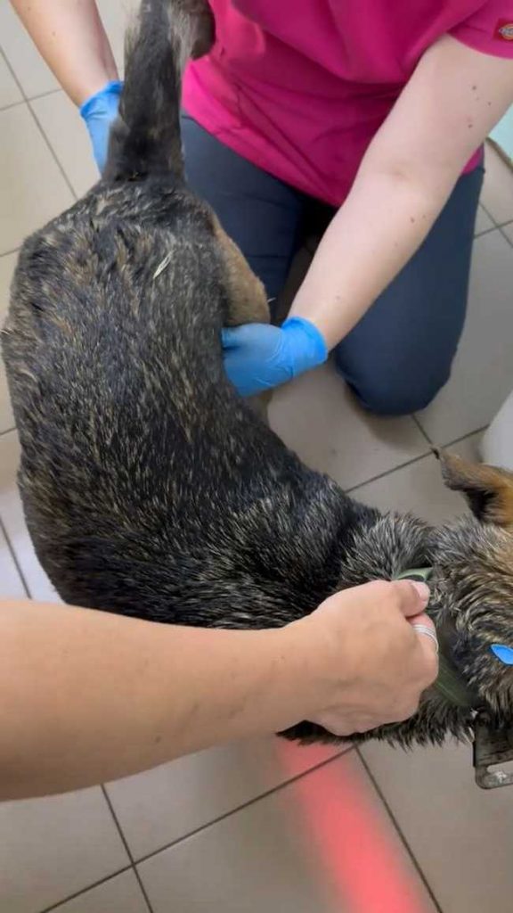 Овчарка Багира из Херсона, была спасена в Корабельном районе 7 июня 2023г., на следующий день после катастрофы на Каховской ГЭС.