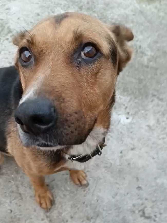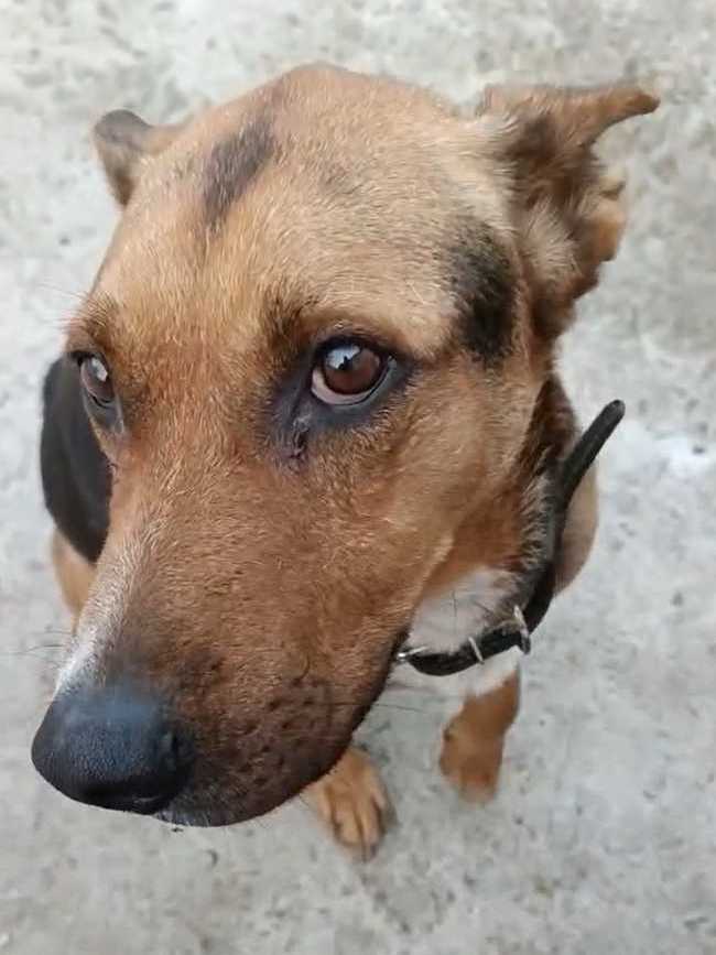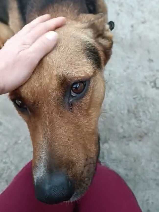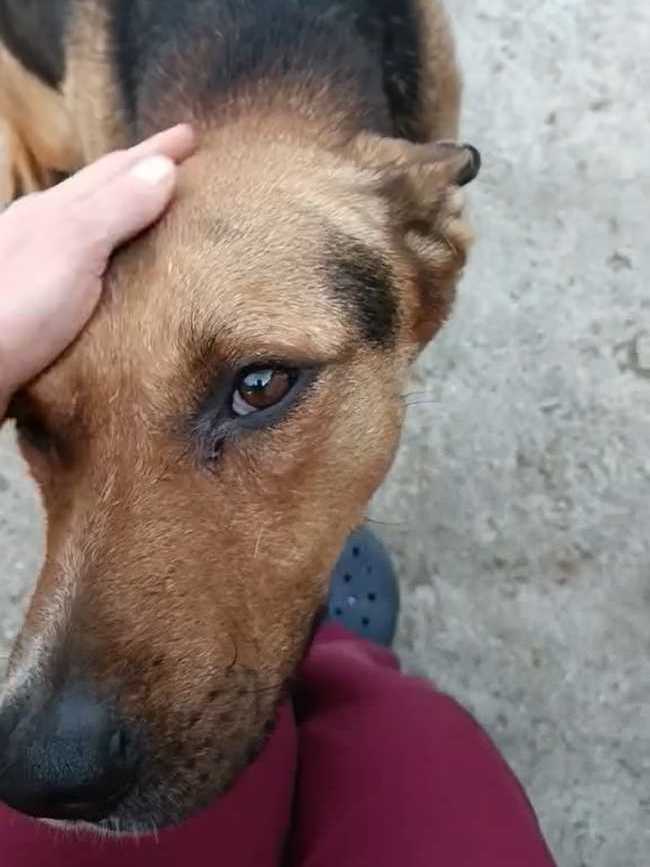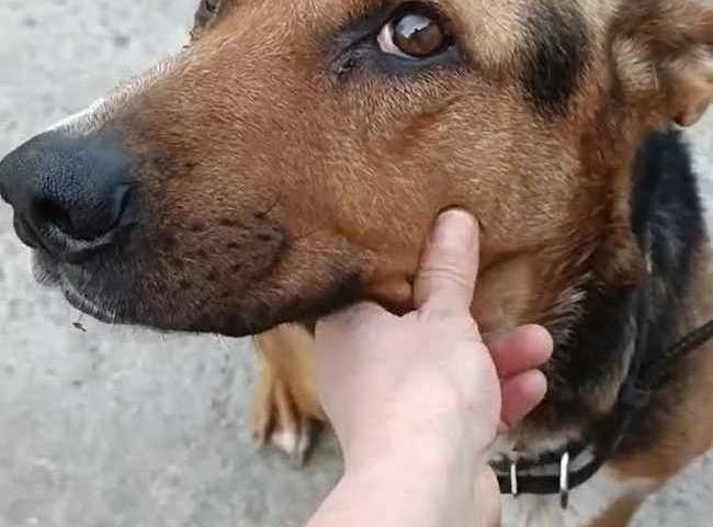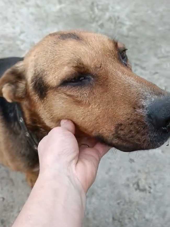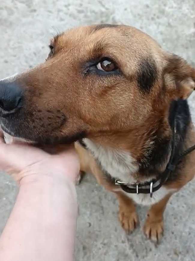 Его здесь хвалят. Говорят, что очень умный пёс. Погулял, заходит сам в клетку, терпит.