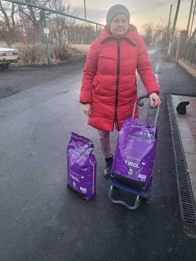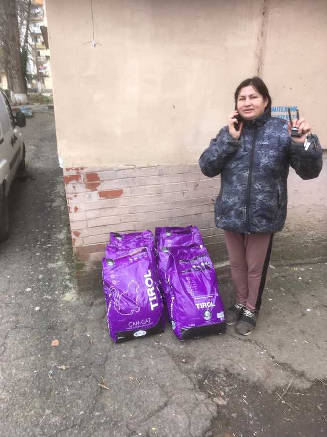 Свою искреннюю благодарность за постоянную помощь кормом для котиков и собачек и поздравительный рождественский продуктовый набор выразила Мельниковой Людмиле пенсионерка-переселенка, зооволонтер Валентина Ивановна, которая на данный момент проживает в с. Дофиновка.