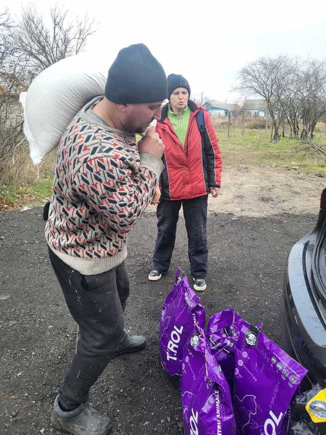 Александровка (которая возле Черноморска) и пустырь возле кооператива «Заря». Доставили крупу, набор бабушке и собачью-кошачью радость)
