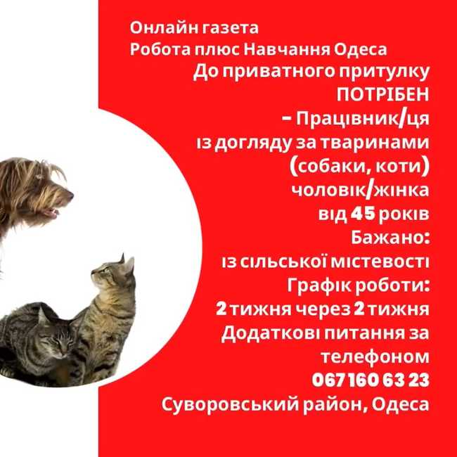 Работник по уходу за животными (собаки, коты)