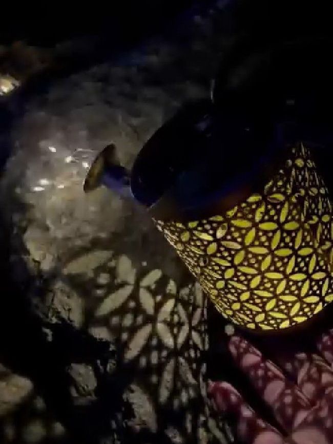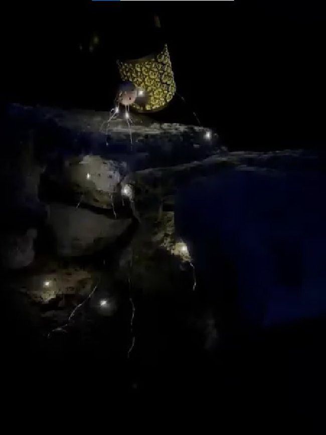 Два дня назад сделали альпийскую горку и установили лейку. С нетерпением ждали ночи, чтобы посмотреть как она светится в темноте! Просто как малые дети сидели в засаде)