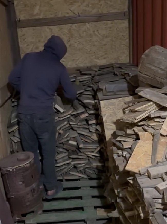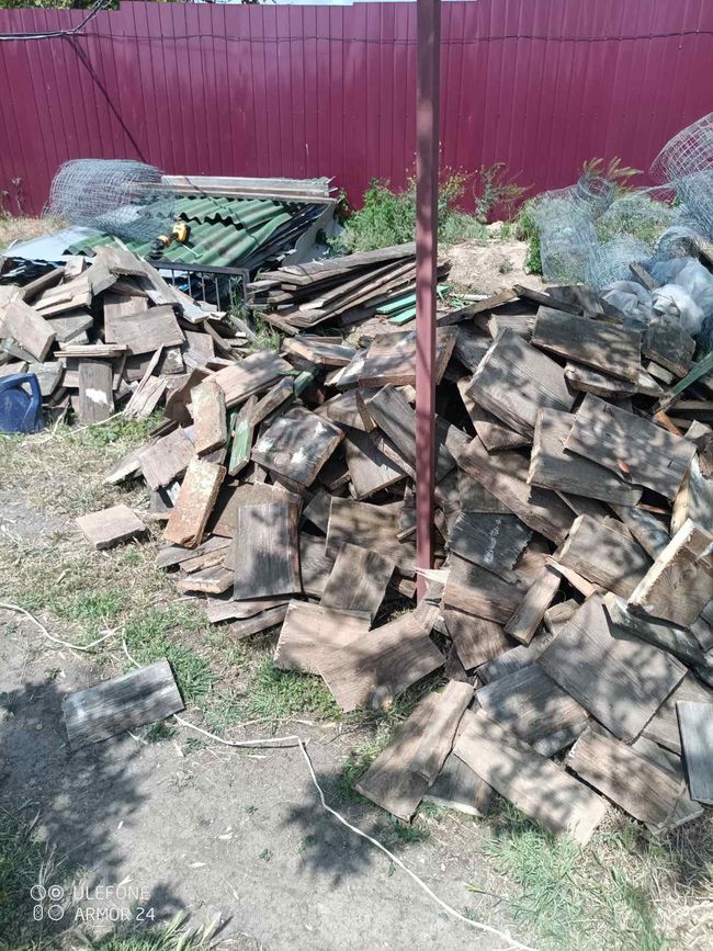 Во-первых, полностью перепилили все старые доски, которые остались не нужны после строительства вольеров. Все сложили возле котла, теперь этот запас на зиму. Его хватит минимум на месяц отопления. Осталось купить дров на печку чтобы варить каши.