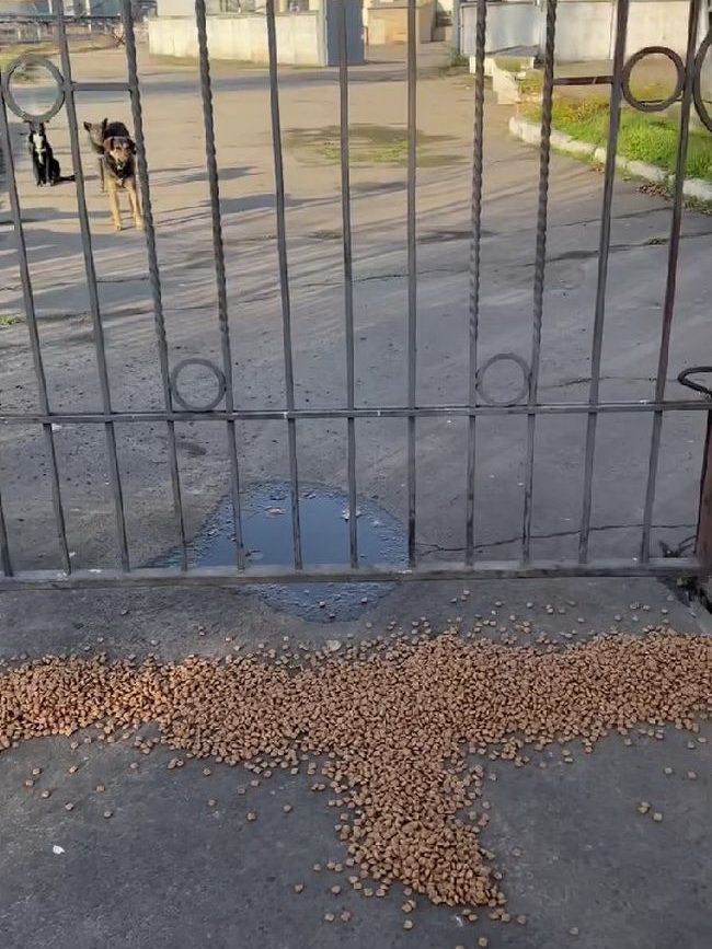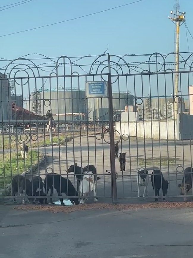 И сегодня, когда мы были на очередном кормлении на нефтебазе, видели, что многие собаки, которых мы кормим, убежали и попрятались.