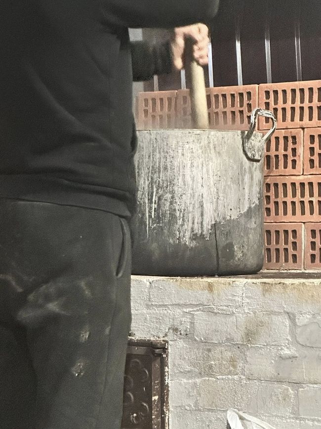 На ужин приготовили 70 литров каши и 40 кг мяса. Готовим частями. На печке помещается кастрюля с кашей и кастрюля с мясом. И так 2 захода. Масло добавляется и части смешиваются в конце, непосредственно перед подачей.