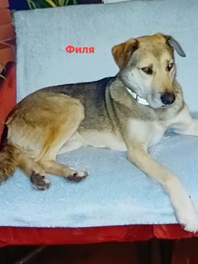 Мальчик Филя, возраст 5 лет, крупный, серый окрас, и девочка Соня, черно-коричневая собачка, меньшего размера.