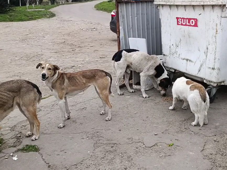 Скоро Новый год и у всех на столах будет вкусная еда. А эти бедолаги будут рыскать по пустому поселку в поисках хоть чего-то съестного.