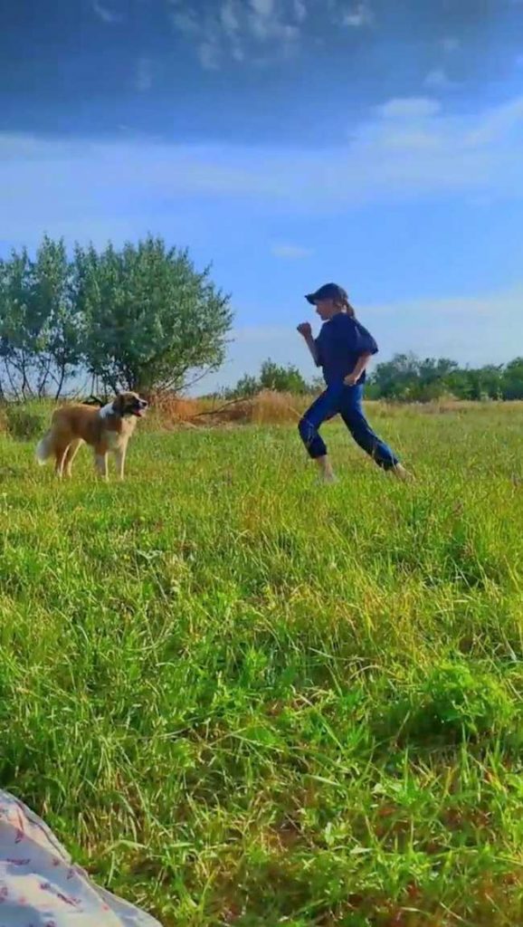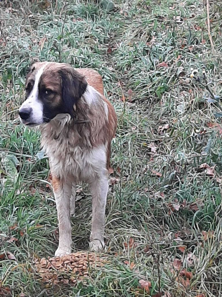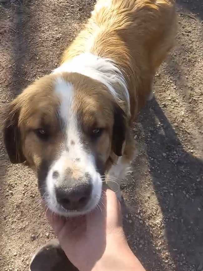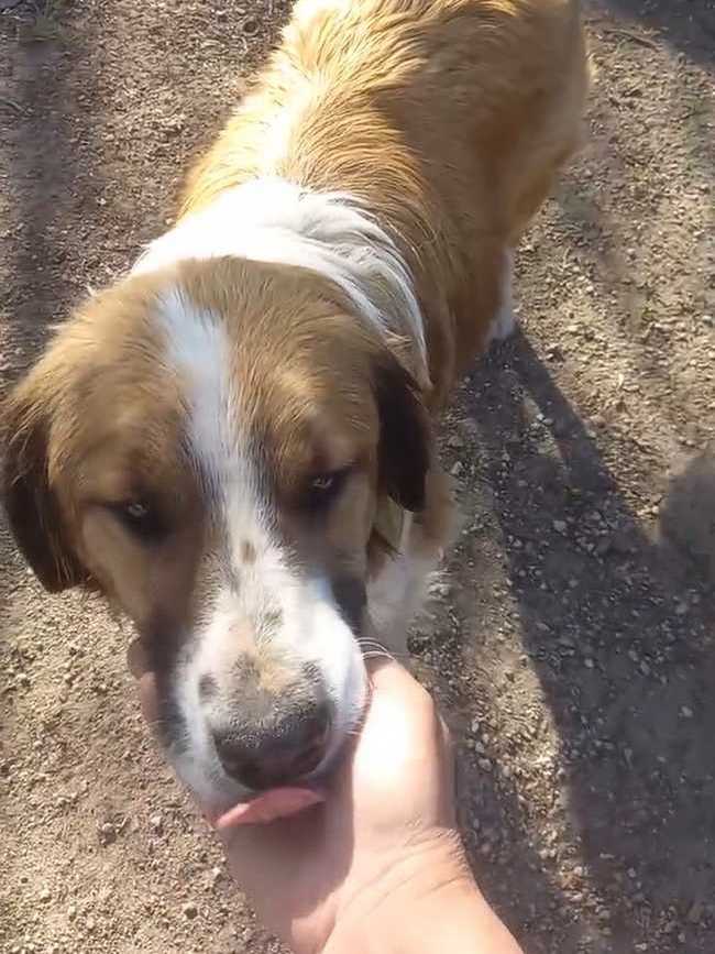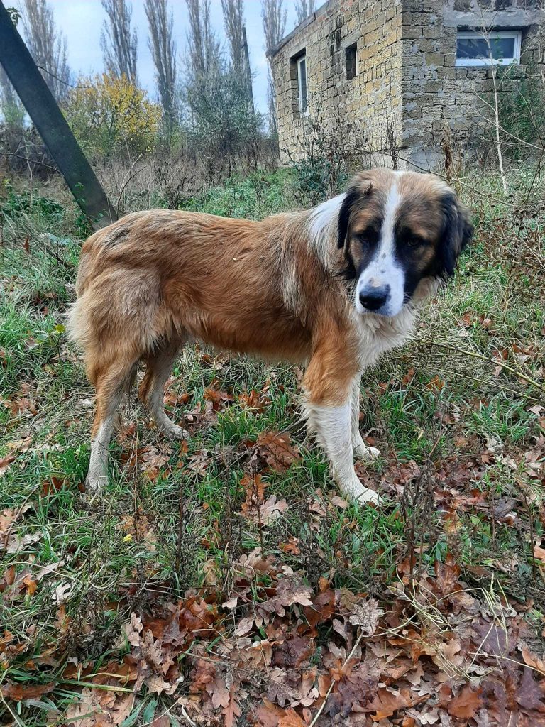 Полтора года назад, мы с Алисой были в Александровке по делам. Спускаясь вниз по одному из переулков, заметили этого пса. Он был очень голодным.