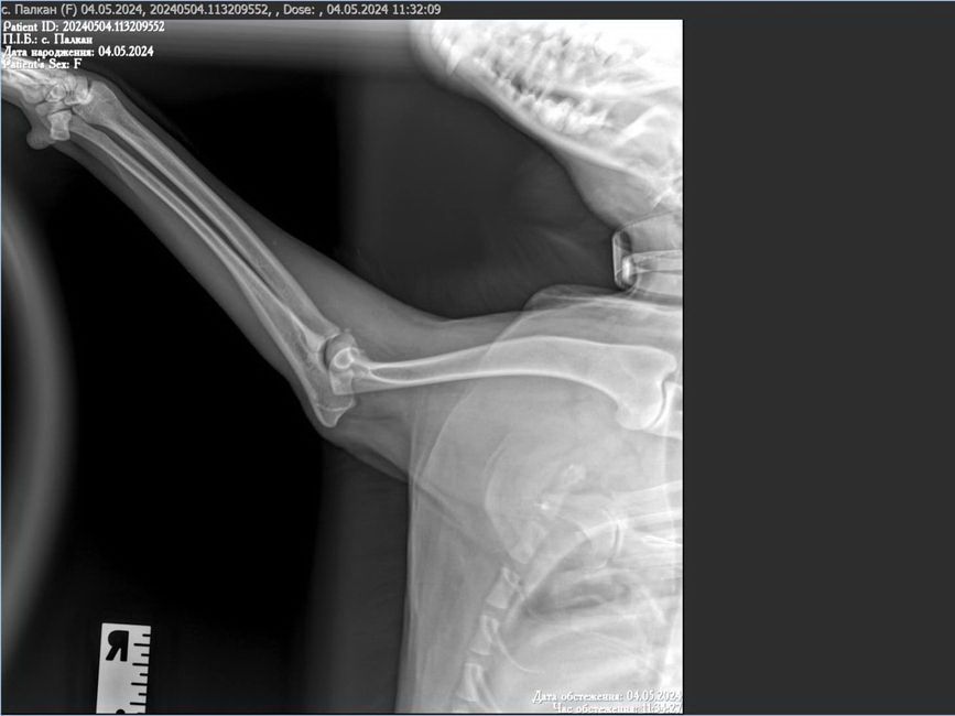 Вывих локтевого сустава у трехлапого пса Полкана. В общем, наш Полкаша все-таки доигрался… Любитель прыжков, гонок и участник местной «формулы» попал в переплет. Но к его чести, он не унывает.